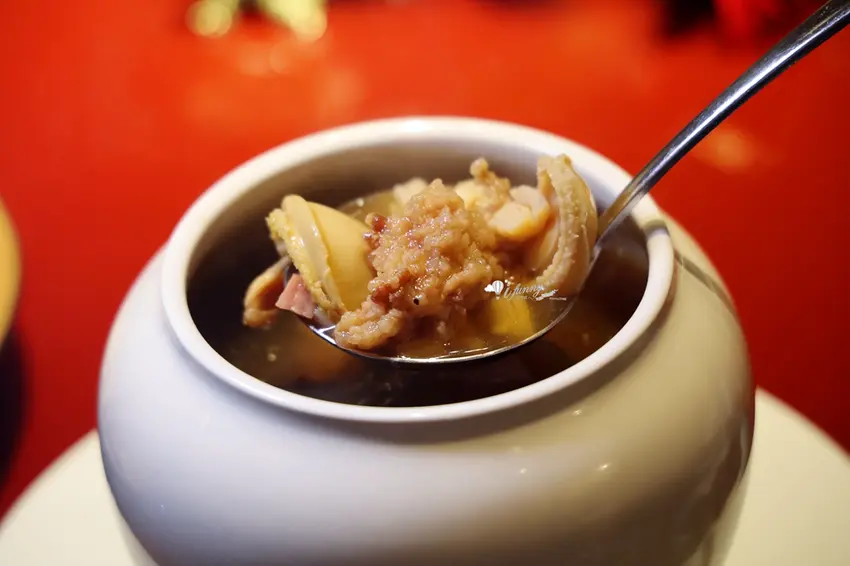 佛跳牆膠質滿滿黏唇,魚翅濃湯厚滑鮮美