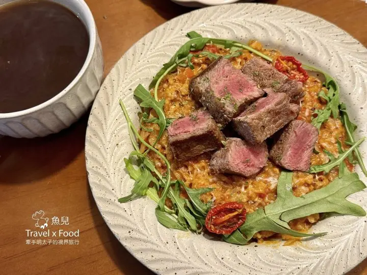 使用3-5分的板腱牛搭配微辣的紅醬燉飯,既美味又開胃。骰子牛熟度可微調,但過老可是會影響口感,除非很排斥,否則還是建議聽從店家的料理專業,才能呈現最可口的佳餚。