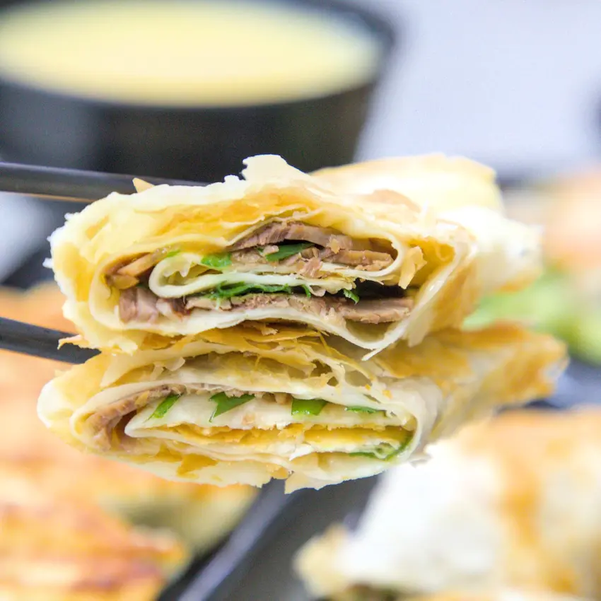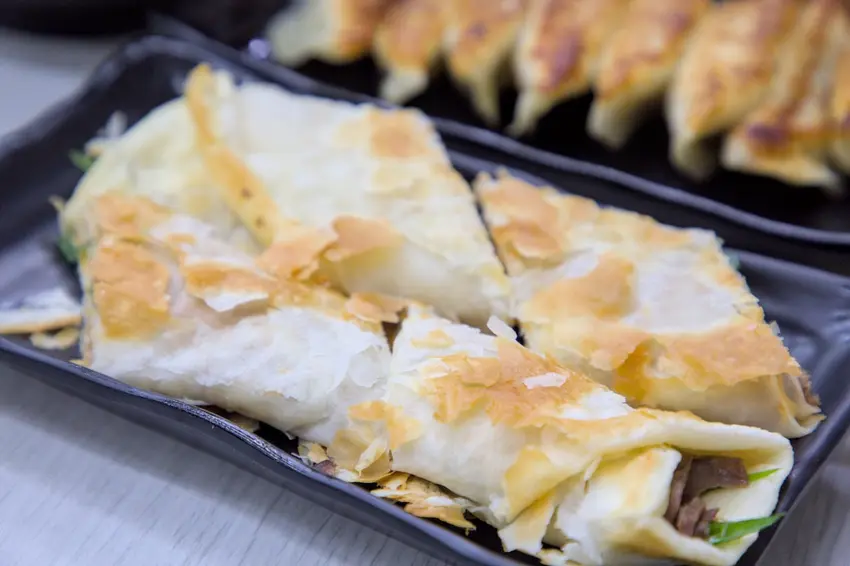 手工現桿蔥油餅香,牛肉捲餅紮實飽滿