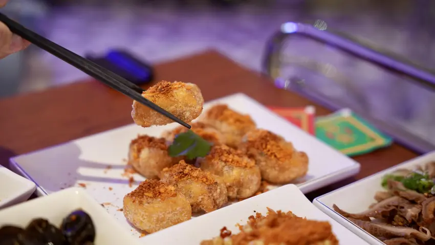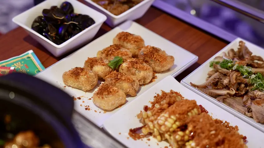 三道必點創意料理:避風塘炸水果玉米、避風塘炸蘿蔔糕、麻香手撕雞,這三道真的超好吃,除了雞煲鍋之外,今天的前三名就是他們了!水果玉米非常甜,配上金黃酥脆的避風塘,鹹香辣好好吃!