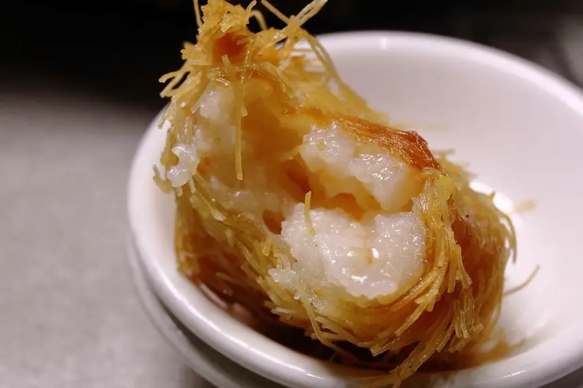 外酥脆的金絲包裹著鮮嫩的蝦仁,蝦肉的鮮甜與外層的香脆讓人享受到口感上的對比