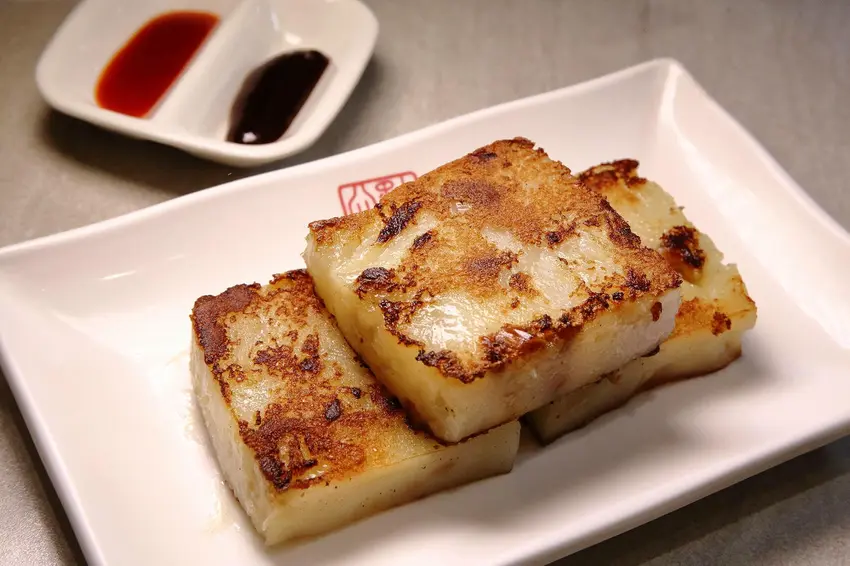 熱騰騰的蘿蔔糕,煎到表面恰恰,香氣撲鼻、外脆內嫩!