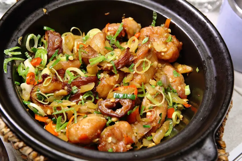 特色是將剁椒醬與特製醬汁將肥腸和雞肉一同煨煮入味