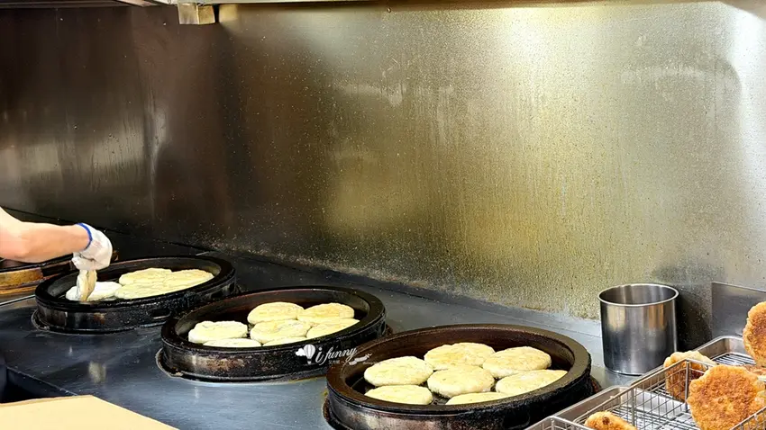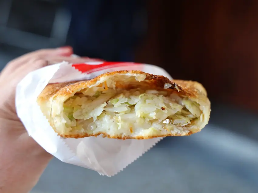 南港捷運站美食「老眷村煎餅」,以現桿外酥內嫩的口感聞名。必點蘿蔔絲餅與高麗菜餅,建議提前預訂以免現場久候。