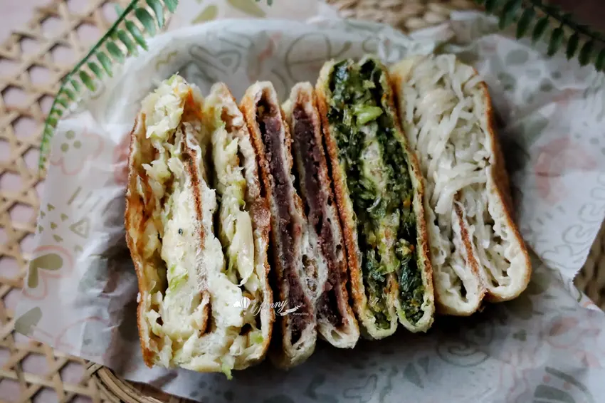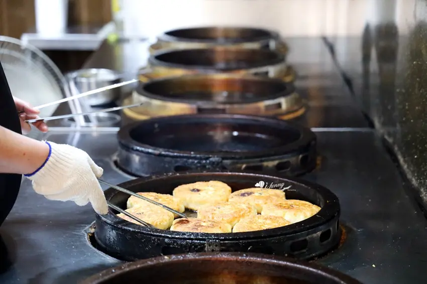 鹹口味中首推「高麗菜餅」,內餡加入了紅蘿蔔絲與蝦皮提鮮,高麗菜保有脆甜的水分,建議一定要撒上店家特製的胡椒粉,香氣層次瞬間提升,微辣的胡椒香更能襯托出蔬菜的鮮甜。另一款經典的「蘿蔔絲餅」則是老饕的最愛,外皮呈現誘人的金黃焦色,中間微 Q 邊緣酥脆。咬開後能吃到一絲絲爽脆的蘿蔔絲內餡,調味恰到好處,搭配胡椒提味,完美演繹了傳統眷村的樸實美味。