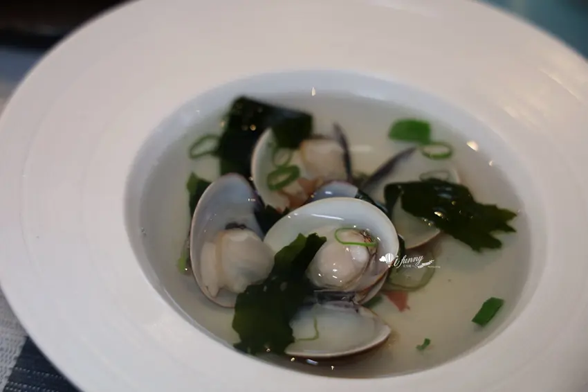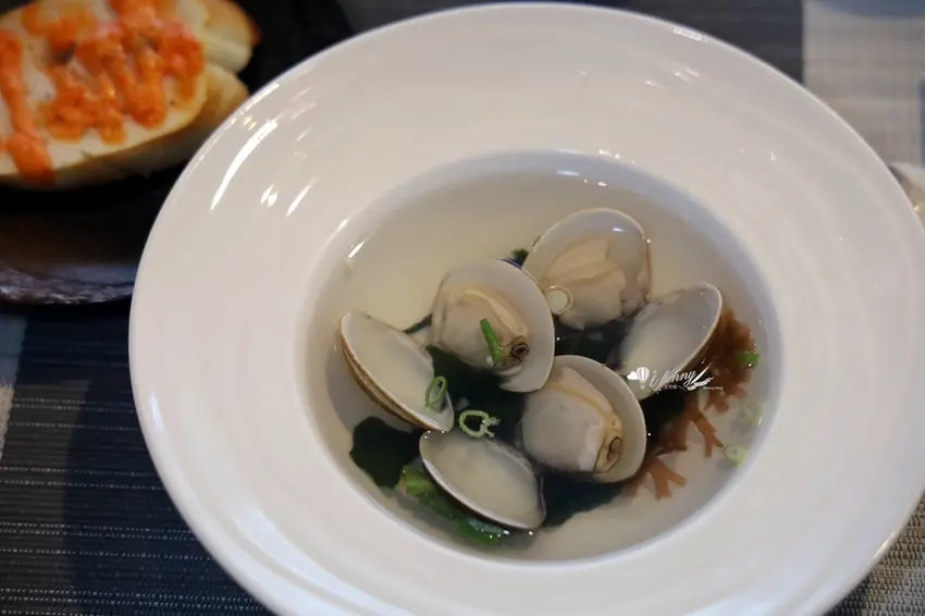 明太子麵包開胃鹹香,蛤蜊海藻湯頭鮮甜