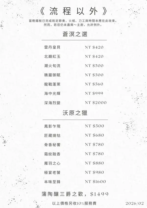 創立於 2012 年的「江雁塘新時尚鐵板燒」,位於台北中山區新生北路高架橋旁,距離捷運中山國小站僅需步行 3 分鐘。這家餐廳不僅擁有十多年的歷史,更享有全台十大頂級鐵板燒的美譽。近期最受矚目的,是由擁有超過一甲子廚藝經驗的鄒師傅親自設計的創意無菜單料理。這套定價 1500 元的套餐,不分平假日皆可享用,內容包含先付、前菜、湯品、雙主菜到甜點飲品,CP 值極高。且讀者憑本文章可享有 75 折優惠,絕對是約會慶生或宴請賓客的頂級首選。