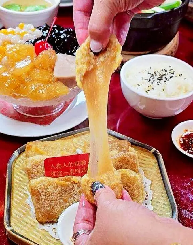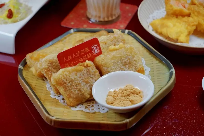 麵茶炸年糕可說是有春茶館的點心代表作,更是每桌客人必點的餐點之一。