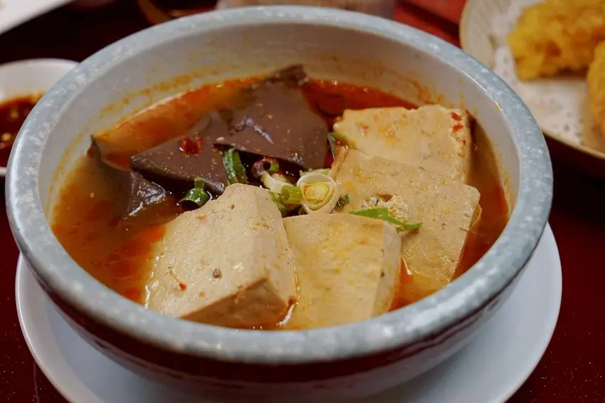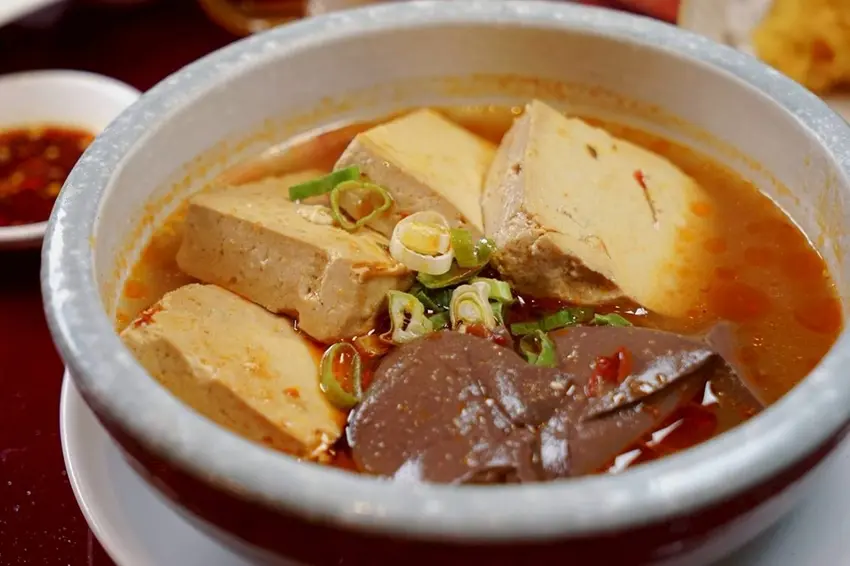 有春茶館的麻辣臭豆腐是愛辣朋友必試的小點,豆腐口感軟嫩滑順,完全沒有油炸的負擔。麻辣湯汁香氣十足,微微麻辣帶出層次感,裡面的豬血軟滑入味,增添口感豐富度。每一口都能同時感受到豆腐的細嫩、醬汁的香麻,以及豬血的滑順,非常適合配飯或搭鍋物一起享用。