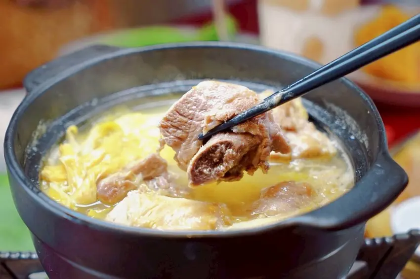 陶鍋濃白雞湯上桌時是以自行加熱的方式呈現,隨著火慢慢加熱,湯汁開始冒出熱氣,整鍋的香氣也跟著散開,等待的過程反而多了一份儀式感。