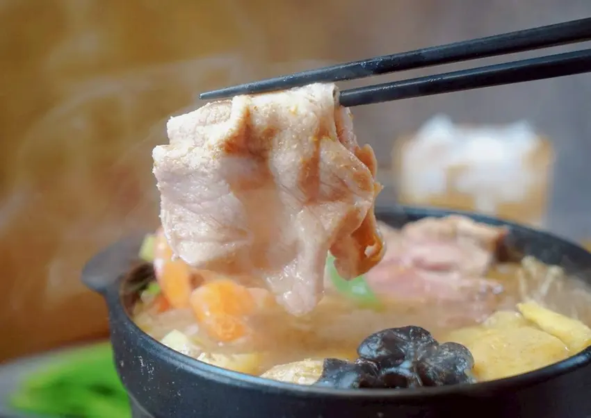 不得不說,這一鍋的雞肉份量給得相當大方,而且肉質表現也不錯,不會乾柴。隨著湯頭慢慢滾煮,雞肉把湯汁的香氣吸進去,吃起來多了一層風味,整體很加分。