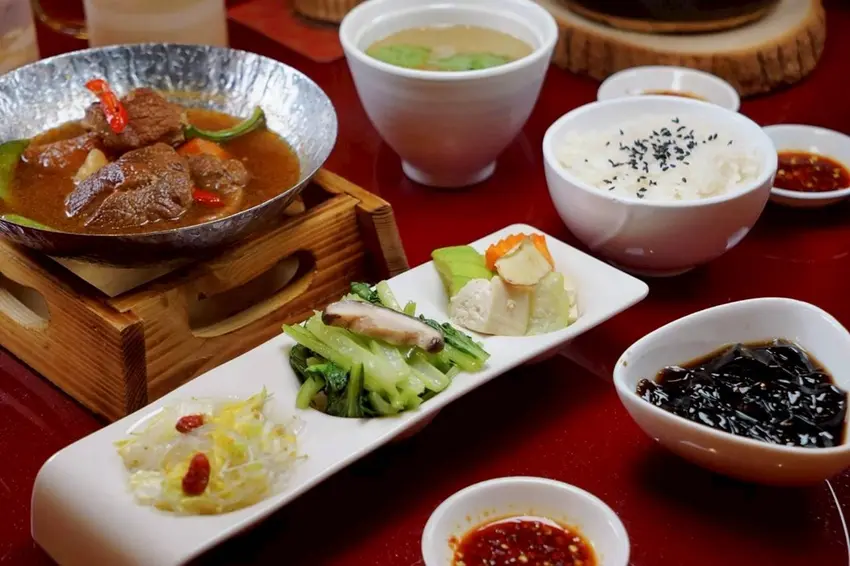 有春茶館的新菜紅燒牛肉飯真心必點!套餐還附了三樣當季小菜、一份湯、辣椒醬,最後還有仙草凍收尾,整份吃下來超滿足。不管是想簡單吃飽,還是想一次嚐到多樣風味,這份紅燒牛肉飯都很適合。