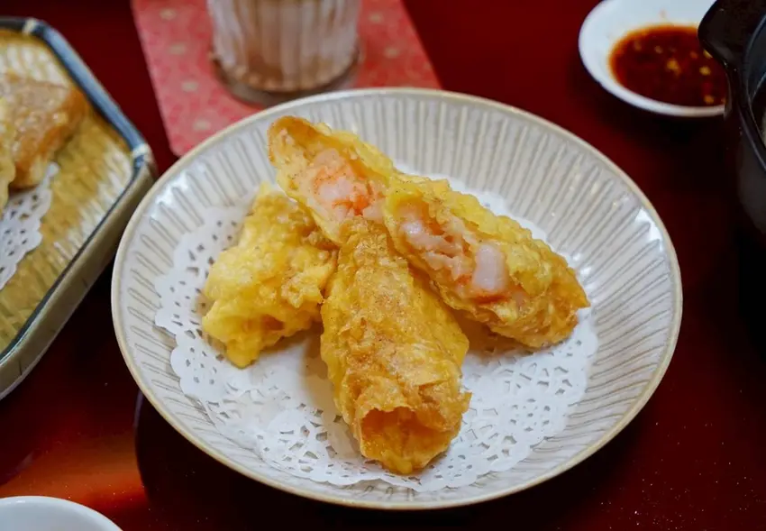 千張黃金蝦捲是有春茶館這次新菜之一,外層金黃酥脆,內餡包著鮮甜的蝦肉,吃起來帶有層次感。