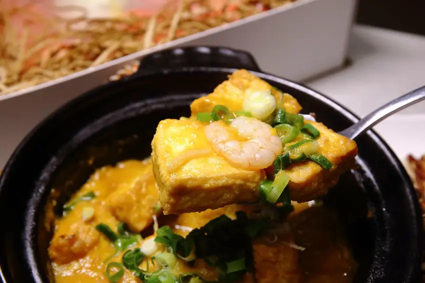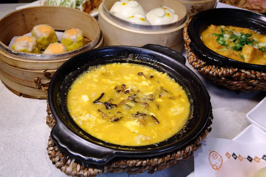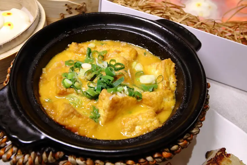 靈感來自〈蟹粉豆腐煲〉,內有蟹肉、滑嫩雞蛋豆腐與蝦仁