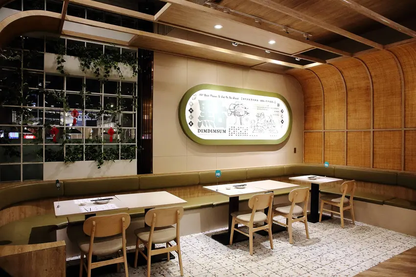 裝潢特色融合香港復古與現代潮流,運用港式招牌、燈箱、鳥籠等元素營造熱鬧街景氛圍,搭配明亮色彩、木質調及可愛的豬仔造型