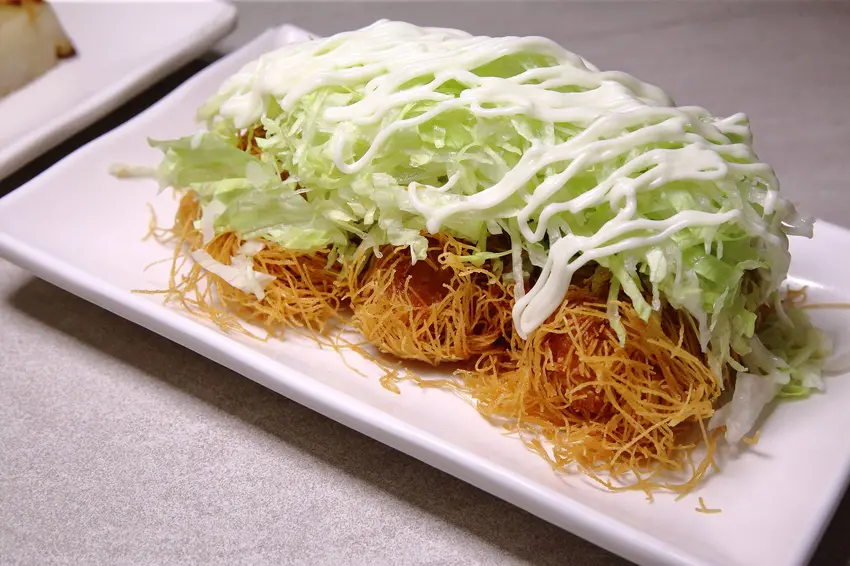 經典鹹蛋黃蝦餅:整顆鹹蛋黃製成獨特金沙粉,濃濃蛋黃香