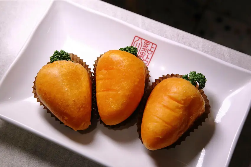 將台灣傳統水果禮盒化身趣味造型包,禮盒內當然少不了點點心的經典招牌「豬仔流沙包」,以及傳統水果禮盒神還原的蘋安包、橘利包