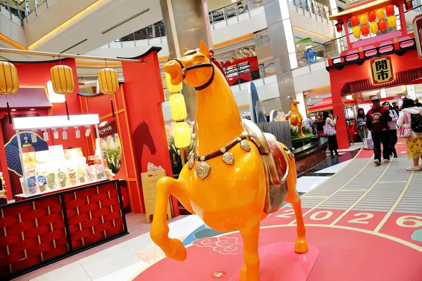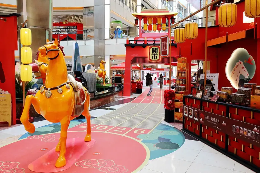 桃園最美購物中心-大江購物中心【大江南北東西市 萬馬奔騰賀新春】賀歲慶裝置藝術主題、人氣市集亮相
