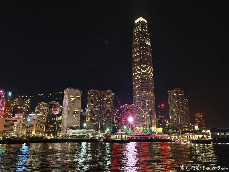約45分的船程,我們沿著維多利亞港小繞了一圈,剛好可以欣賞兩岸不同的夜景