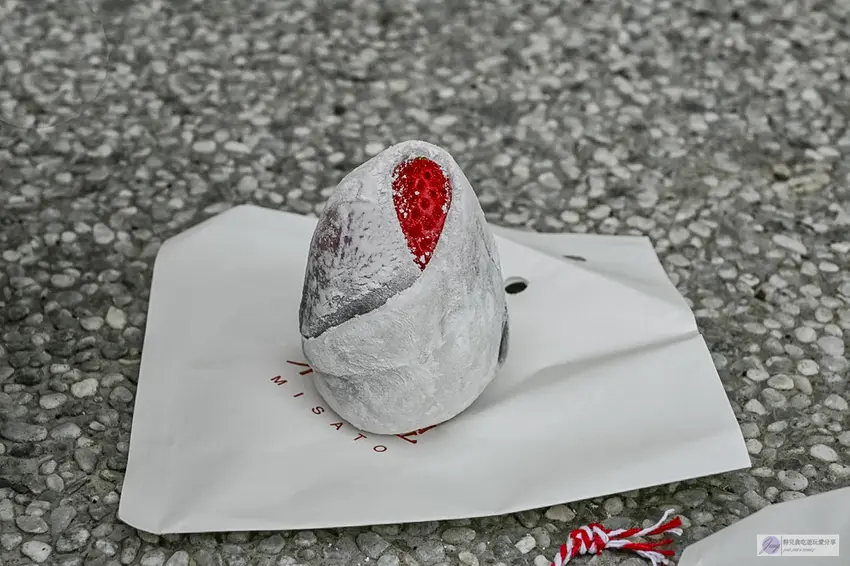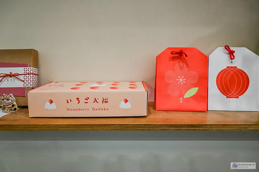 除了大福,店內還有另一款人氣商品「草莓最中餅」。這款點心造型相當可愛,上下兩層是日式最中餅殼,中間夾著綿密紅豆餡、軟 Q 的大福皮以及新鮮大草莓。不過要特別提醒,這裡的最中餅皮口感偏向帶有韌度而非酥脆,這點可能因人而異。雖然外帶用紙袋裝著走稍微容易擠壓到造型,但豐富的內餡層次依然值得一試。如果喜歡多重口感堆疊的朋友,這款結合了糯米香與果香的點心會是不錯的選擇。
