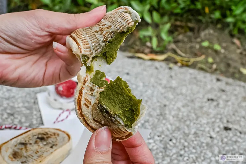 店內的招牌靈魂「小判餅」,外型做成日本古代金幣的模樣,小巧可愛且寓意吉祥。剛出爐時外皮烤得微微焦脆,咬下去口感卻像麻糬一樣軟 Q 彈牙,帶有獨特的米香。口味部分推薦「抹茶口味」,選用福岡八女茶製作,帶有濃厚茶香與微苦的大人味,搭配綿密細緻的紅豆餡,甜度控制得恰到好處,完全不膩口。若外帶回家變冷了也不用擔心,使用氣炸鍋或烤箱稍微覆熱,就能恢復外酥內軟的絕佳口感。