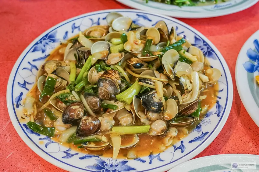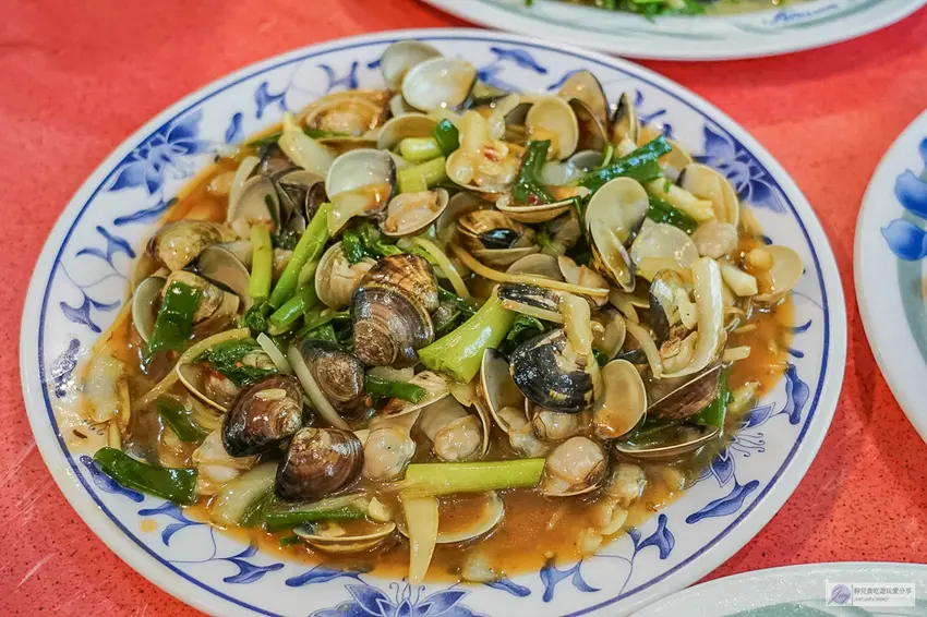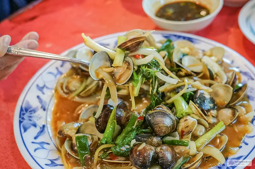 經典的「客家小炒」展現了師傅的火候功力,豆干煸得入味,整體口感清爽不油膩,吃得到大火翻炒後的迷人鍋氣。而「鹽酥溪蝦」更是下酒菜首選,店家貼心地去除了扎口的蝦螯,搭配滿滿的蔥蒜椒鹽炸得酥脆噴香,每一口都充滿了鹹酥香氣,超級涮嘴。最後再來一盤份量豪邁的「炒大蛤仔」,肉質飽滿鮮甜,鹹甜醬汁回甘,為這頓豐盛的客家饗宴畫下完美句點。