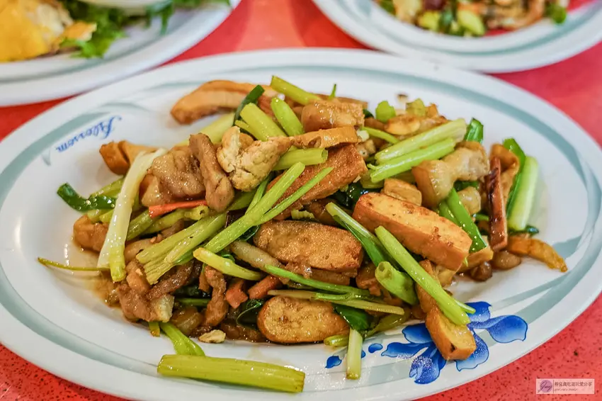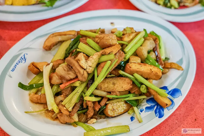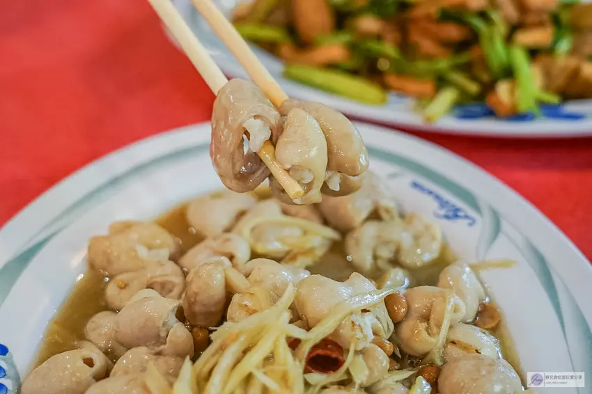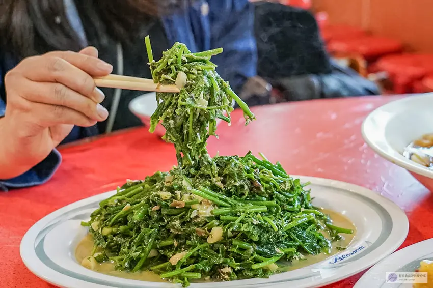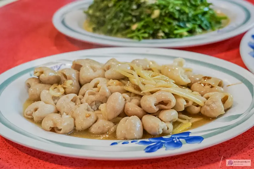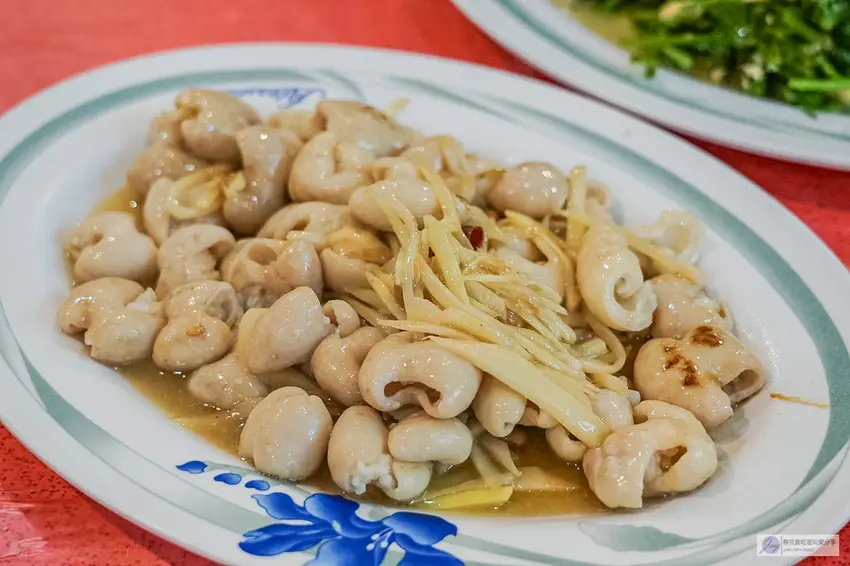 這裡的「薑絲大腸」酸度給得非常到位,大腸處理得乾淨無腥味,口感 Q 彈有勁卻不會像嚼橡皮筋,酸香四溢非常開胃。另一道特色菜「炒過貓」也讓人驚艷,店家創意加入鹹蛋與皮蛋一同拌炒,讓原本容易有澀味的過貓變得口感滑嫩。雙蛋的鹹香與獨特風味為蔬菜增添了豐富層次,吃起來清爽又不失風味,是相當推薦的蔬菜選擇。