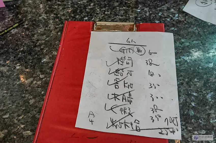 這裡的點餐方式相當豪邁,菜色全寫在黑板上且不定時更換。除了招牌土雞有標價外,其他菜色多依人數調整份量,若有預算考量建議點餐時先詢問價格。我們這次六個人點了滿滿七道菜,結帳金額竟然只要 2540 元,平均一人四百出頭就能飽到天靈蓋。重點是內用白飯免費吃到飽,外帶也只要一碗十元,這種佛心價格與驚人份量,難怪成為在地人的私藏愛店。