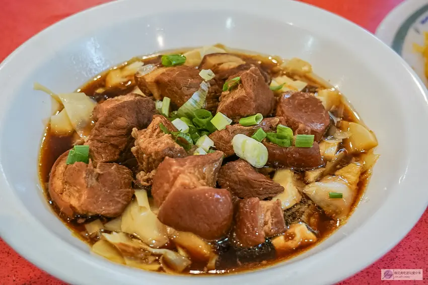 「爌肉筍干」是白飯殺手級的菜色,整塊爌肉燉煮得相當入味,醬色誘人。肥肉部分處理得極好,吃起來軟 Q 且帶有滿滿膠質,瘦肉雖然稍微偏柴一些,但瑕不掩瑜。底下的筍干吸飽了鹹香的肉汁精華,口感爽脆,搭配著濃郁的醬汁一起淋在白飯上,鹹香十足的滋味讓人忍不住多扒好幾口飯,是充滿古早味的經典菜餚。