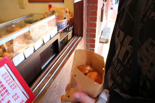 拜拜完店家開門了阿盧就二話不說的買來吃了~