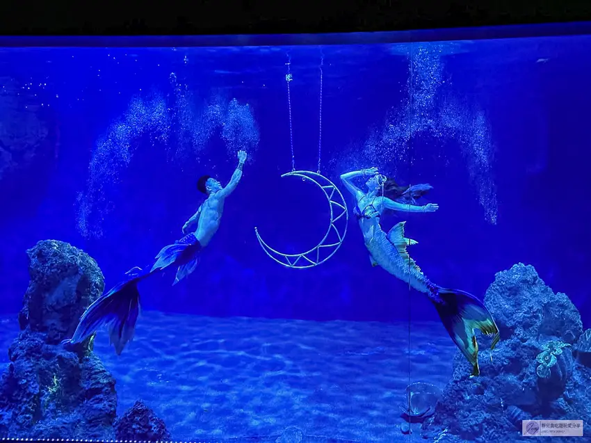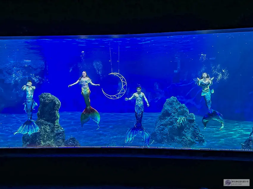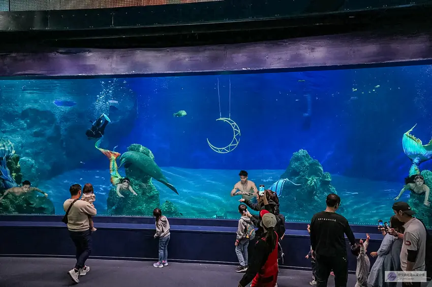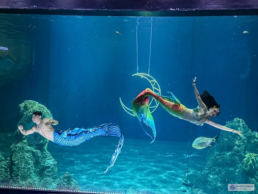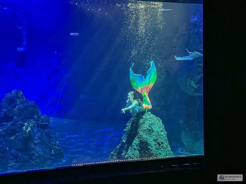 來到這裡,最令人期待的莫過於全台唯一的「美人魚實境秀」。看著真人人魚在水中優雅穿梭,輕盈翻轉並吐出珍珠般的泡泡圈,搭配絢麗的聲光效果,畫面美得如夢似幻。美人魚秀每天僅有珍貴的兩個場次,且為了維護觀賞品質,強烈建議大家一定要事先預約。表演結束後還有機會與人魚合照,但因人潮眾多,若想近距離同框手腳要快。特別提醒,拍照時嚴禁開啟閃光燈,以保護表演者與海洋生物的眼睛。