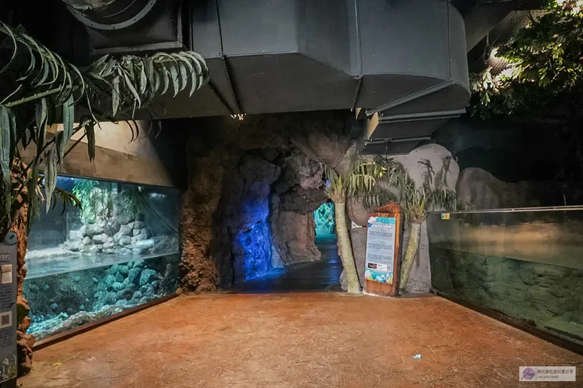 「探險島水族館」是躲雨避暑的最佳去處。館內擁有長達數公尺的夢幻海底隧道,鯊魚與魟魚在頭頂悠游,波光粼粼的景象令人屏息。尤其是魟魚路過時露出的招牌笑臉,更是療癒感滿分。館內還設有互動式觸摸池,讓小朋友能親手觸摸海星、海兔等潮間帶生物。此外,這裡還能看到美人魚的原型「海牛」,看著牠慢條斯理啃食蔬菜的模樣,佛系又可愛,絕對是館內的人氣王。