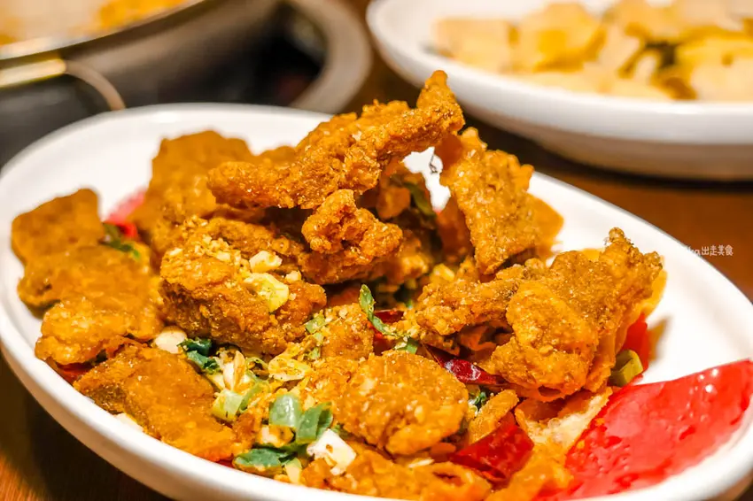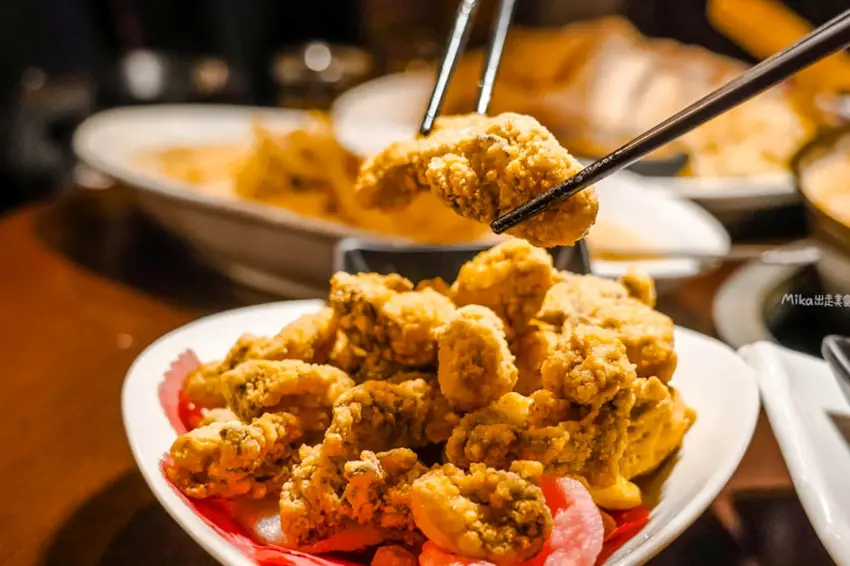 炸物類的表現也相當出色。「椒鹽排骨」麵衣炸得酥脆鹹香,灑上蒜酥與蔥花,單吃就像在吃排骨酥一樣過癮。「蚵仔酥」顆顆飽滿,外酥內嫩火候控制得宜。比較特別的是「椒鹽龍珠」,這裡的龍珠口感偏肥嫩滑口,與一般常見的脆彈口感略有不同,但外皮依然炸得金黃酥脆。至於「脆皮肥腸」雖不到極致脆口,但沾上白胡椒粉後香氣提升,依然是一道稱職的下酒好菜。