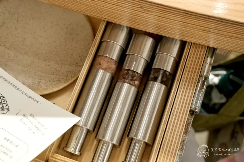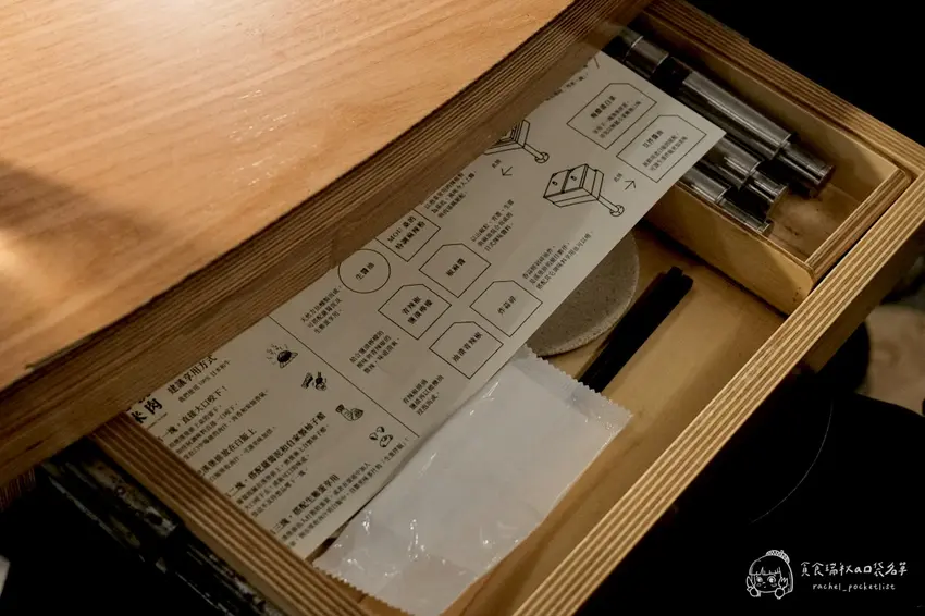 除了上述的三種吃法,每個座位的小抽屜裡都貼心地附上了建議食用順序說明。桌面上更擺滿了多款店家自製的調味料與醬菜,包括生醬油、青辣椒漬物、油漬大蒜等,讓顧客可以自由發揮實驗精神,尋找最適合自己口味的組合。店內自助區提供冰水,生雞蛋則是一人一顆(若需第二顆需加購)。在充滿金屬工業風的時髦空間裡,享受專屬的漢堡排儀式感,絕對是一次難忘的用餐體驗。