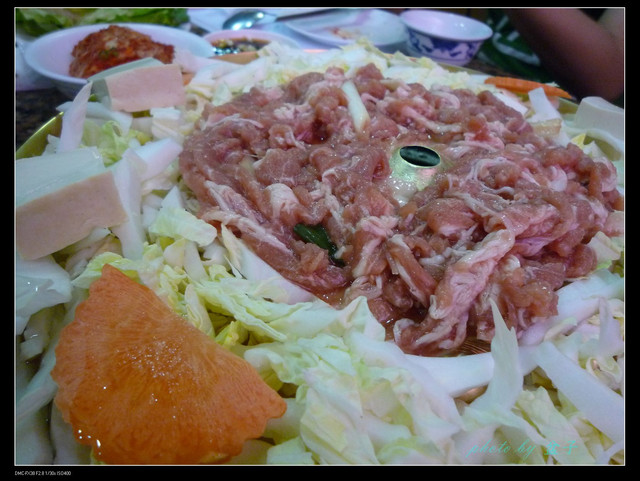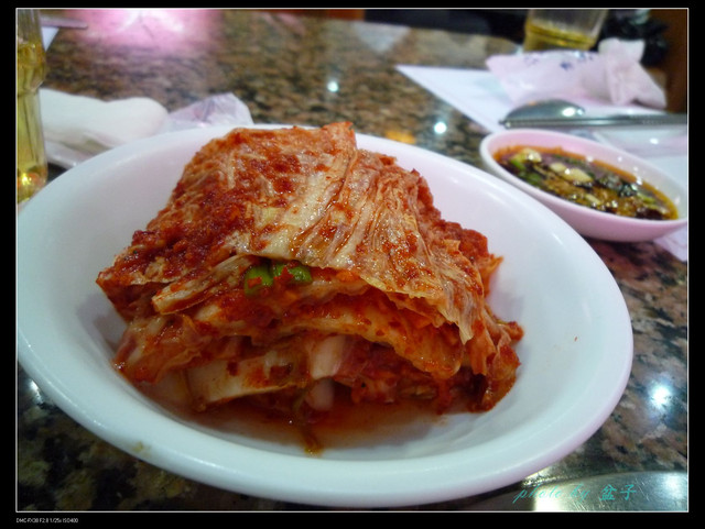 就只先點了三人分烤肉(我們有四個人)、泡菜、包肉菜~