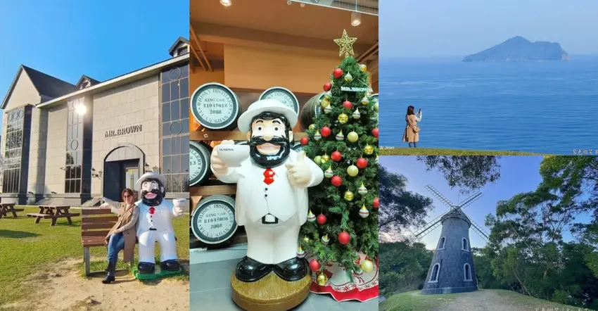 在頭城外澳的半山上,參觀一館「金車伯朗咖啡城堡」免門票,低消為100元/人。兩座咖啡館以咖啡飲品、輕食為主,一館主城堡外小山丘的視野風景真的超棒,眺龜山島,還有城堡荷蘭風車超好拍,順著林間步道可以通往城堡二館再回到一館。步道陰涼平緩好走,山下就是外澳飛行傘基地、烏石港賞鯨、外澳衝浪、還有蘭陽博物館,很適合一起玩起來安排頭城一日遊超好玩