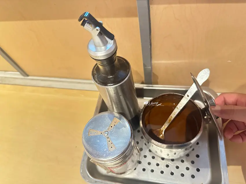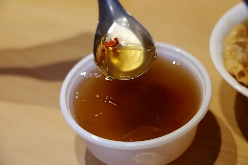 飽餐一頓後,來碗冰涼的「石花凍」是再幸福不過的事。這道甜點口感 Q 彈滑嫩,帶有淡淡的海藻香氣,入口即化且相當清爽,能有效消除嘴裡殘留的油膩感,是夏日消暑或飯後解膩的最佳選擇。店內的自助區也貼心提供了胡椒、烏醋及辣椒醬等佐料,讓客人依個人喜好調整口味。川業肉圓不僅守住了記憶中的古早味,更透過用心的經營與環境升級,讓這份百年美味繼續在艋舺飄香。