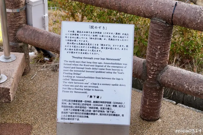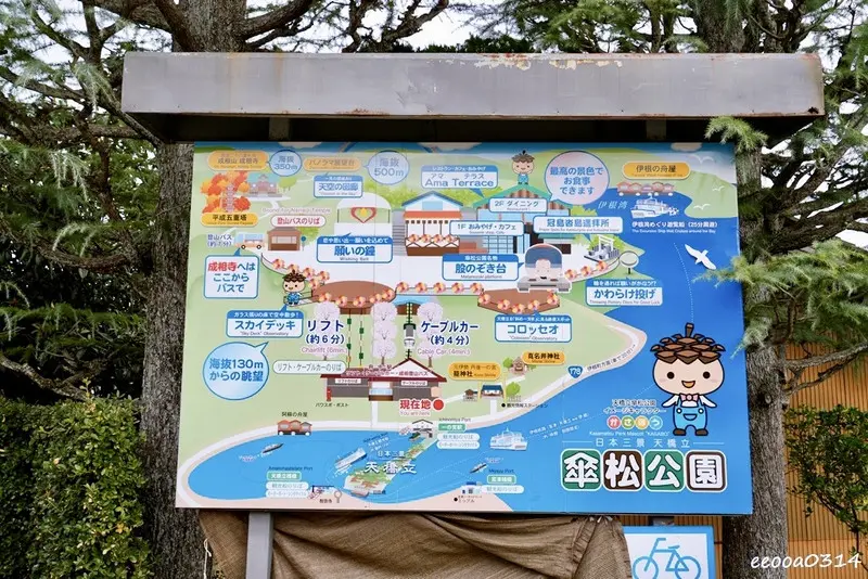 伊根天橋立一日遊行程非常充實,欣賞完舟屋美景、吃完豐盛的舟屋食堂午餐及在伊根灣餵完熱情的海鷗後,我們開車大約20分鐘就來到了位於天橋立北端的「傘松公園」。