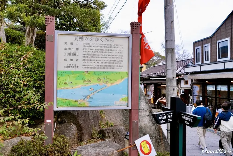如果你跟我們一樣是自駕過來,周邊有很多收費停車場,停車非常方便,若是搭乘大眾運輸,可以從「天橋立站」轉乘巴士或是搭乘觀光船到對岸的「一之宮棧橋」,下船後走幾分鐘就能到達山腳下的「府中站」。