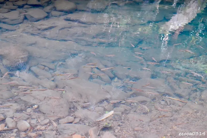 Tiffany藍綠色溪水及成群的魚兒相當療癒,魚兒數量多到令人驚豔,而且幾乎完全不怕人。