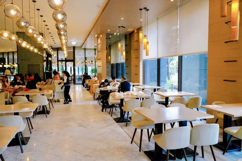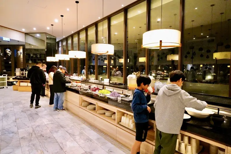 入住當晚我們直接到「明廚百匯」吃自助晚餐,用餐空間很寬敞又明亮,整個環境讓人吃起來很放鬆、不吵雜。