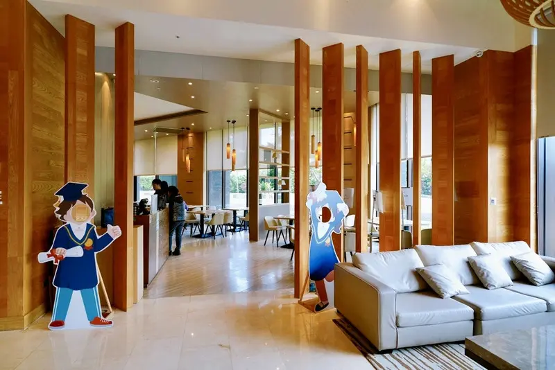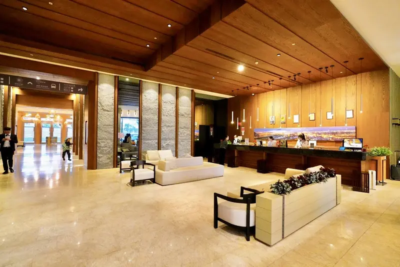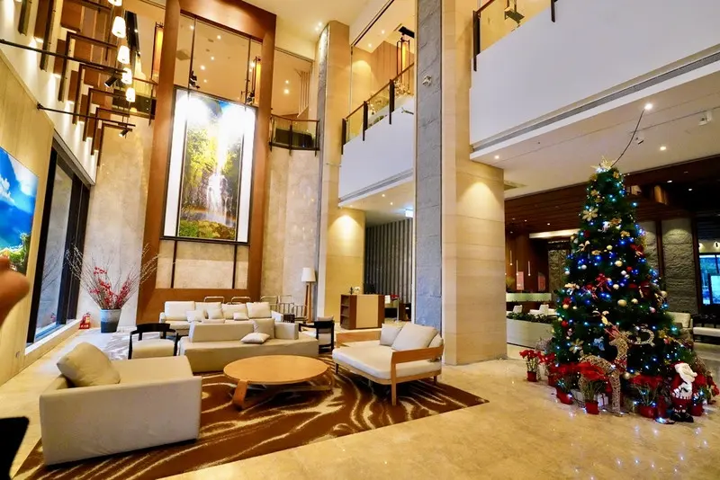走進飯店大廳給人很舒服、放鬆的第一印象,挑高的空間搭配大量木質元素與溫潤石材,整體氛圍沉穩又不失質感,完全不會有壓迫感。