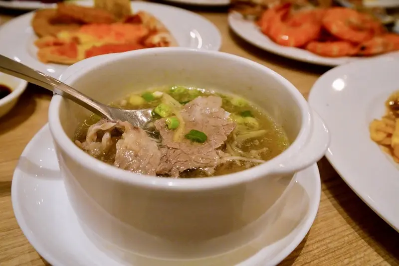 現燙青菜和現沖牛肉湯也一定要吃。