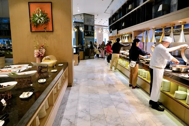 明廚百匯自助早餐延續了晚餐的豐盛與質感,不論是現沖牛肉湯暖胃,還是海鮮、壽司、小籠包,甚至連現燙青菜都能品嚐到最原始的鮮甜。