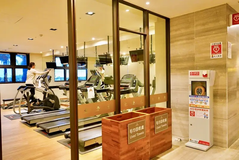 健身房設有跑步機、腳踏車等基本器材,就算度假也能動一動。