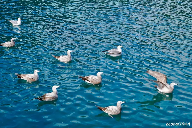 岸上這裡有很多跟著遊覽船回來的海鷗,在船上若有沒餵食完的蝦味先也可以在這裡餵食。