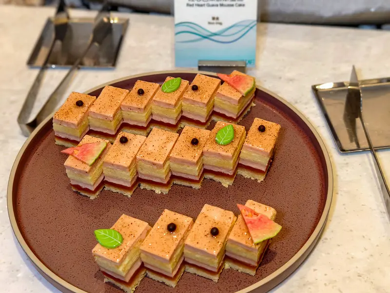 熟食區的表現同樣精彩,「港式蘿蔔糕」煎得外酥內軟,吃得到蘿蔔絲的甜味,相當值得一試。現煮麵食區提供擔仔麵與叻沙麵,擔仔麵的湯頭用蝦頭熬煮,鮮美無比,淋上肉燥配顆丸子,小小一碗暖胃又滿足。蒸籠區的燒賣肉感紮實,鳳爪軟爛入味。熱食部分還能見到宮保雞丁、川味麥片蝦與奶油蒜香炒中卷等經典菜色,每一道都展現了師傅深厚的熱炒功力。