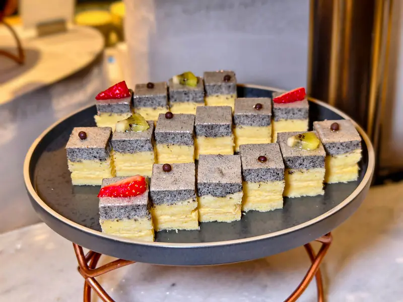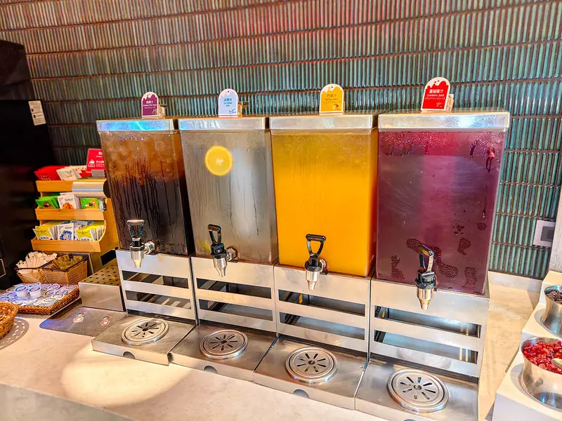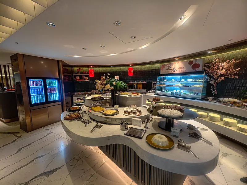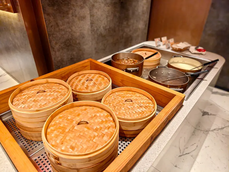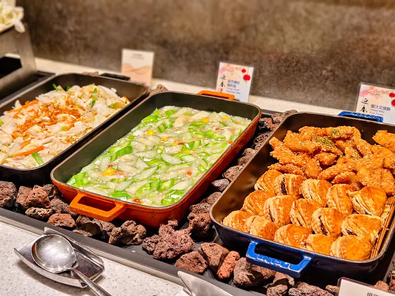老爺的甜點向來是強項,精緻度在台北吃到飽界名列前茅。起司蛋糕濃郁綿密,慕斯口感輕盈。其中最不能錯過的是熱甜點「麵包布丁」,布丁體濕潤充滿蛋奶香,上層烤得微焦酥脆,是許多人的心頭好。冰淇淋提供哈根達斯,口味選擇多。配合中華主題,還有熱呼呼的紅豆紫米湯與杏仁茶,紅豆煮得綿密起沙,杏仁茶香氣濃郁,冬天喝上一碗最是舒服,為這頓大餐畫下完美的句點。