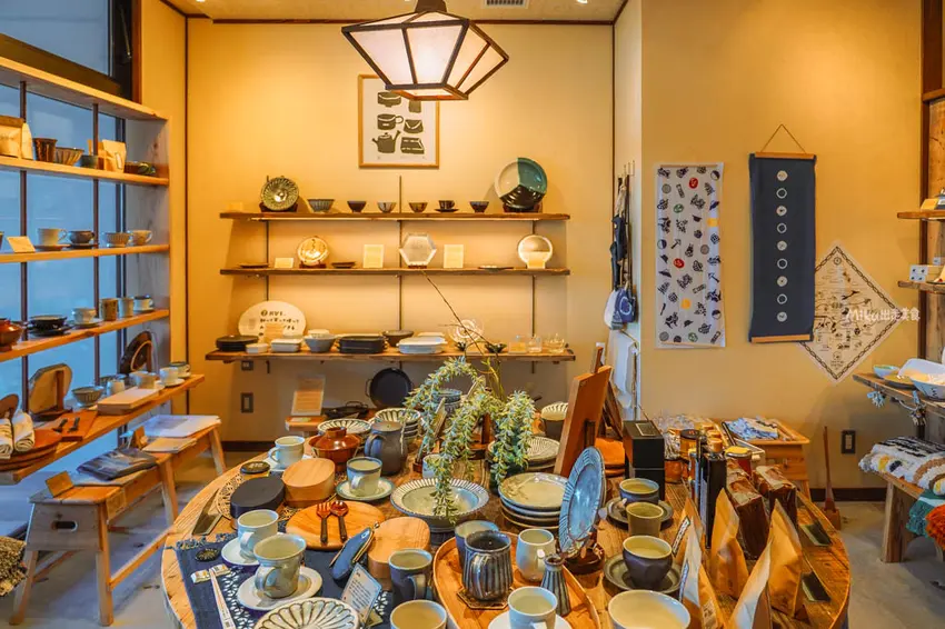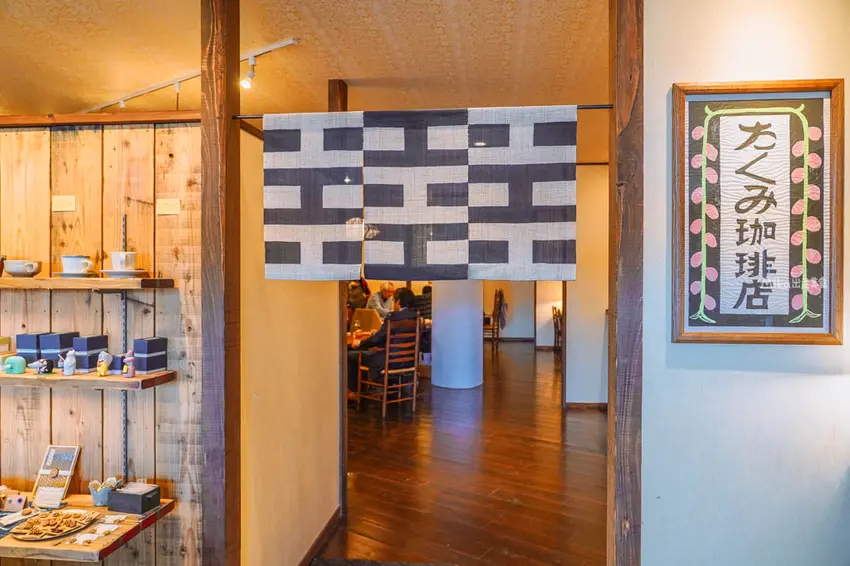 「たくみ珈琲店」最獨特之處,在於店內所有料理皆使用來自鳥取及山陰地區知名民藝陶窯的手作器皿。包括鳥取市的中井窯、山根窯,倉吉市的國造燒,甚至是島根縣的出西窯與湯町窯等。這些帶有溫潤手感與細膩釉彩的陶器,將食物襯托得更加美味。店內裝潢也極具巧思,從桌椅到吊燈都是工藝的一部分,半透明的廚房設計讓人看見料理過程的整潔與用心。此外,店內也販售民藝品、工藝雜貨與咖啡豆,讓喜歡這種生活美學的客人能將這份質感帶回家。