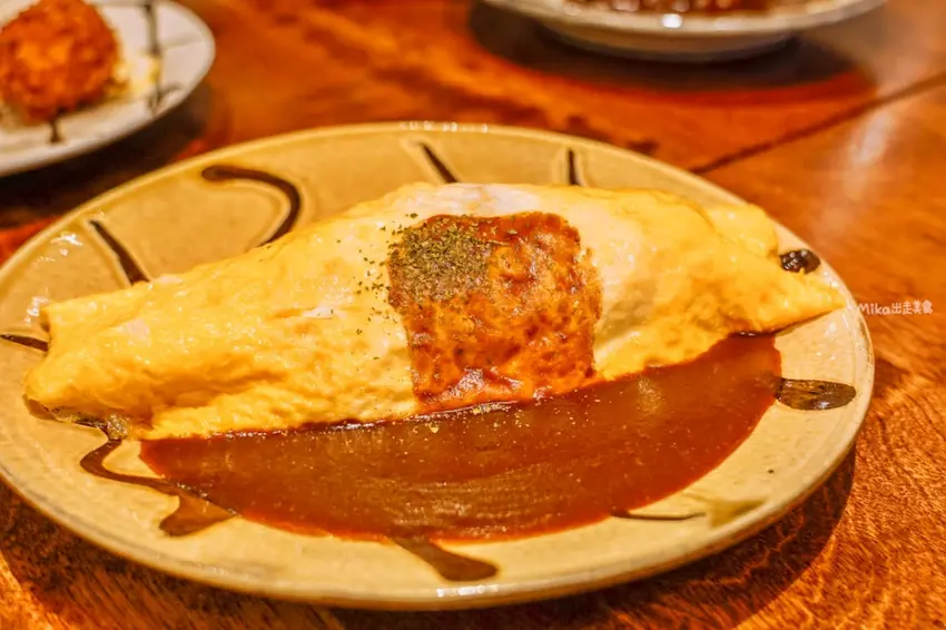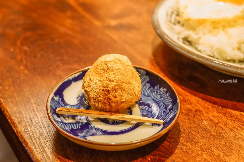 另一道主餐選擇是「燉煮和牛筋蛋包飯」,同樣使用高品質的和牛牛筋燉煮入味,做成咖哩風味的蛋包飯。雖然相較於漢堡排與可樂餅,這道料理表現較為中規中矩,但依然保有一定的水準。值得一提的是套餐附贈的甜點「天然酵母油炸麵包」,口感有點像炸麻糬,上桌時還帶有溫熱的溫度,外酥內軟 Q,搭配一杯自家烘焙的熱咖啡一起享用,為這頓充滿民藝氣息的午餐畫下完美的句點。